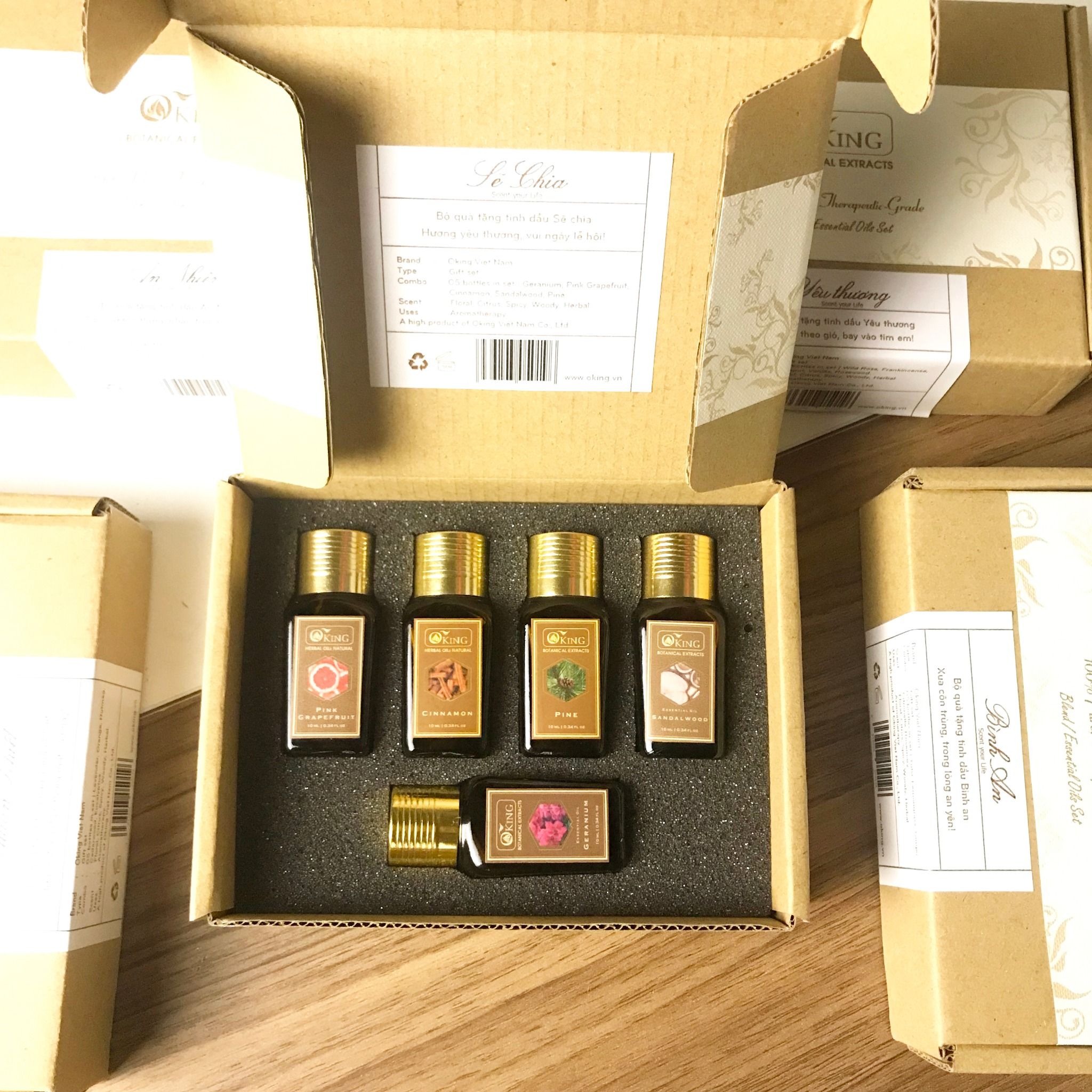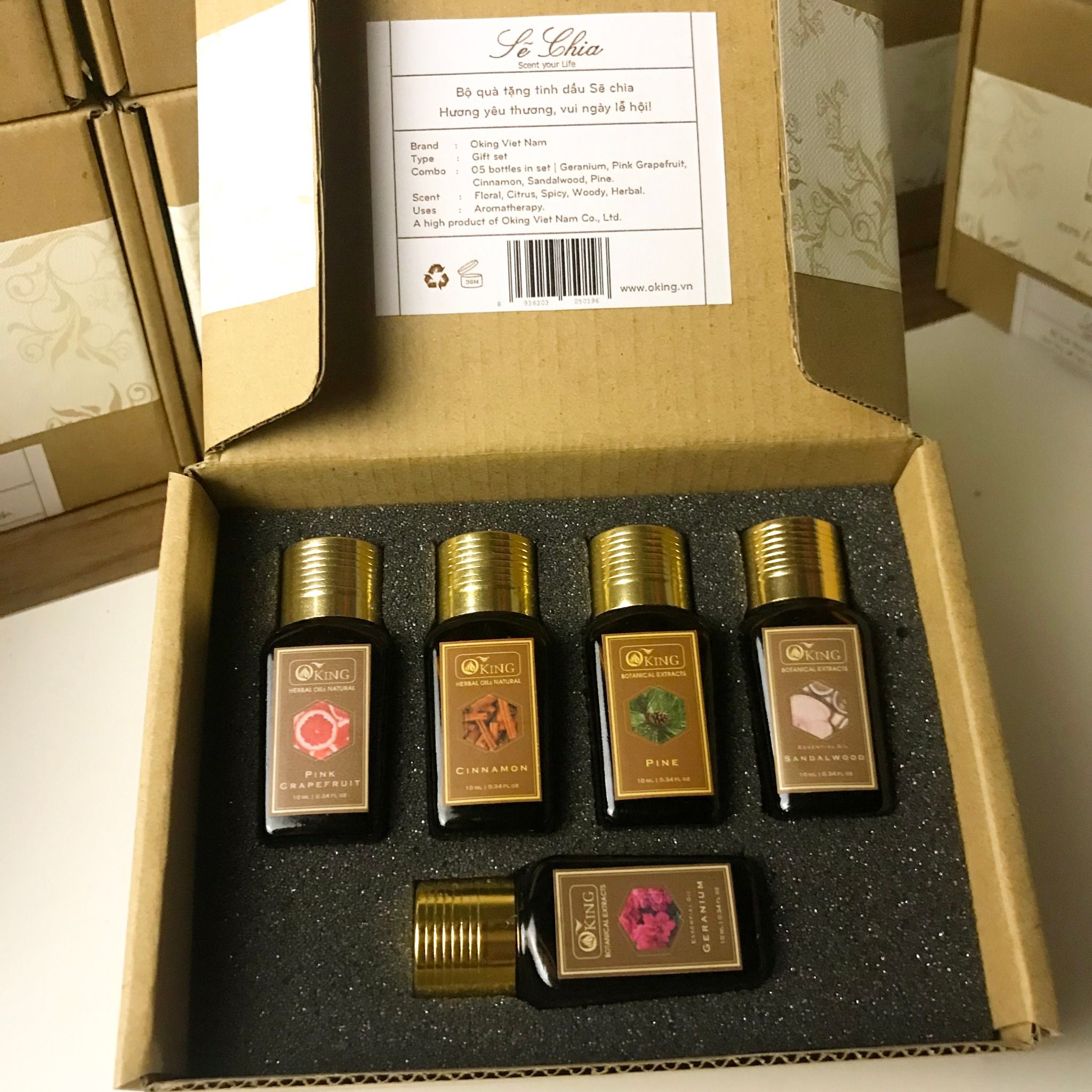 - Bộ 05 chai tinh dầu nguyên chất Oking